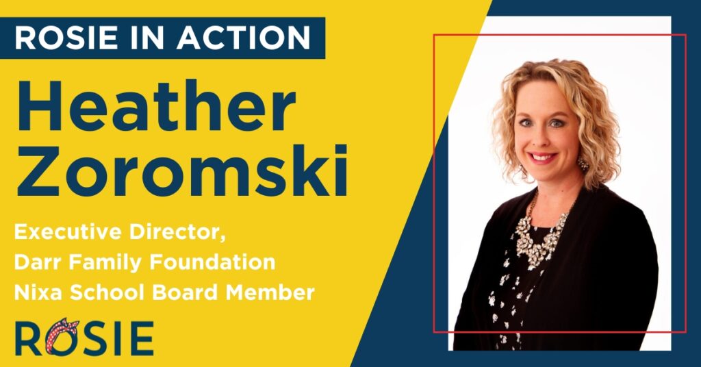 Welcome back to our Rosie In Action series! The women of Rosie are out in our community, making a difference in their organizations, serving on boards, living into their passions, and positively impacting the world around them. We want to share their stories with you. Heather Zoromski is an inspiring leader with expansive experience in the nonprofit world and serves her community as a member of the Nixa School Board. Read below to get to know Heather, her career, community involvement, and advice for fellow Rosies.